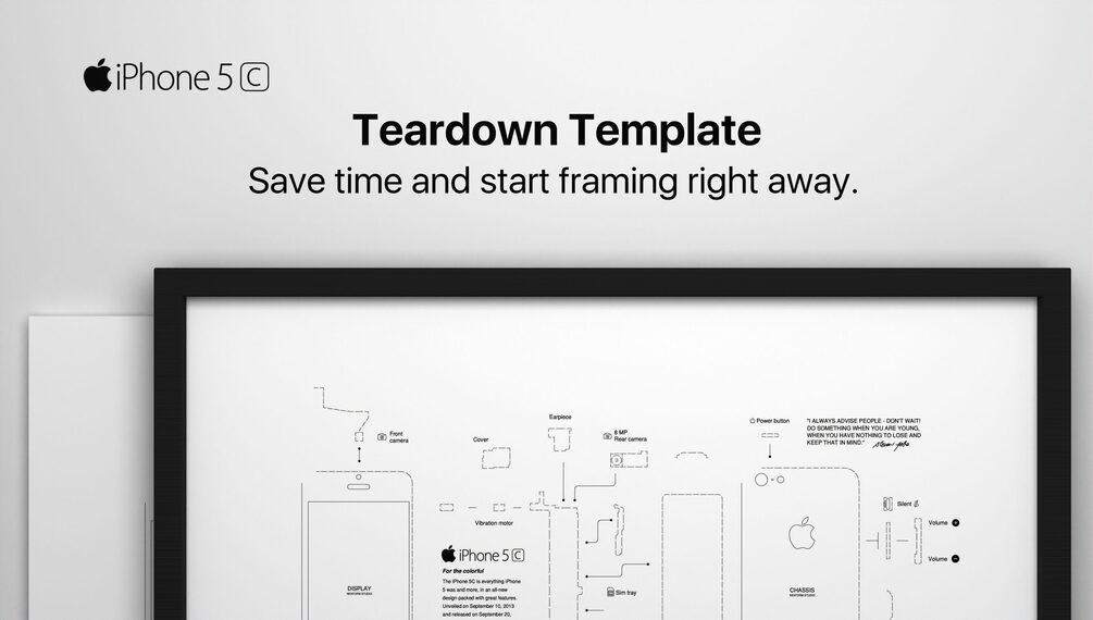 iPhone 5C Teardown Templates for framing your device - Giving new life to old tech.